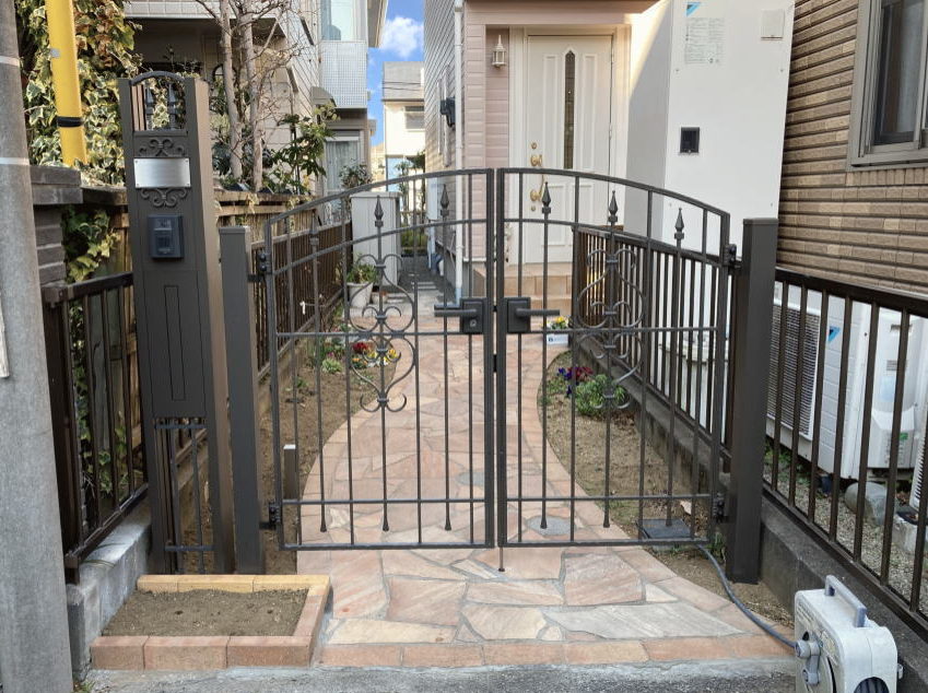 アルミ鋳物片開門扉施工例 H様邸